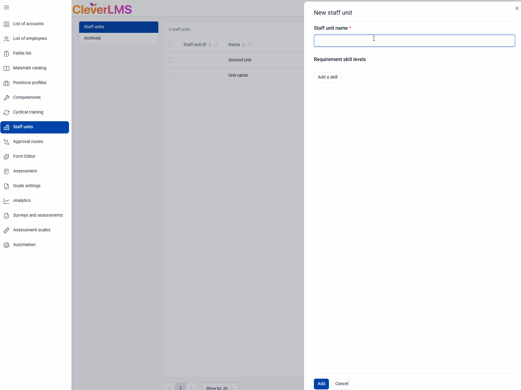 - Complete the creation of the Staff Unit by clicking the " Add " button.