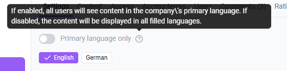 When enabling the "Primary Language Only" feature in content, the user will see the following display: